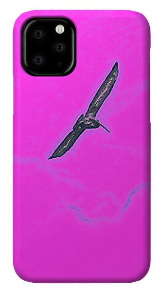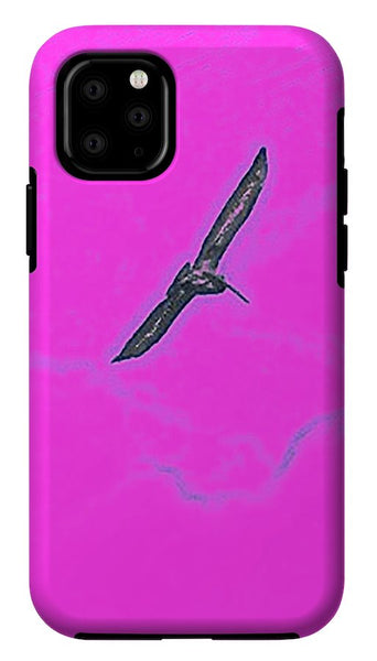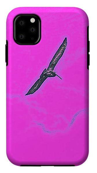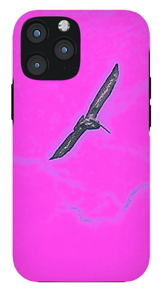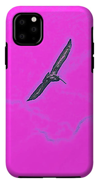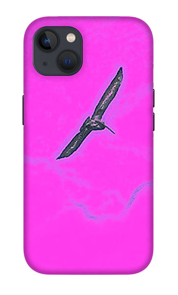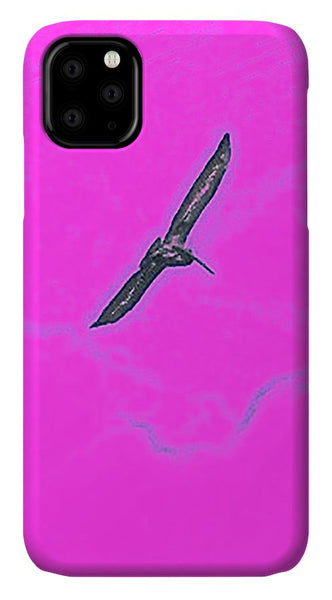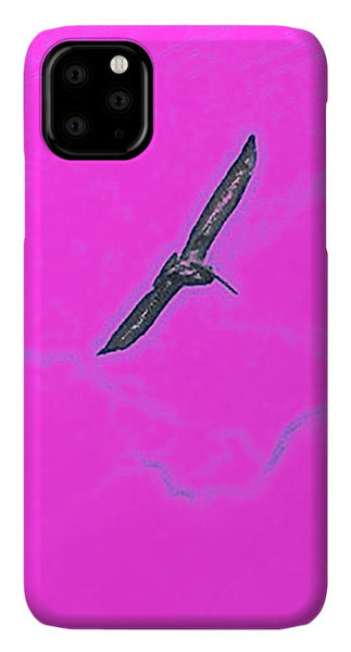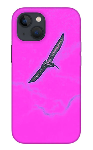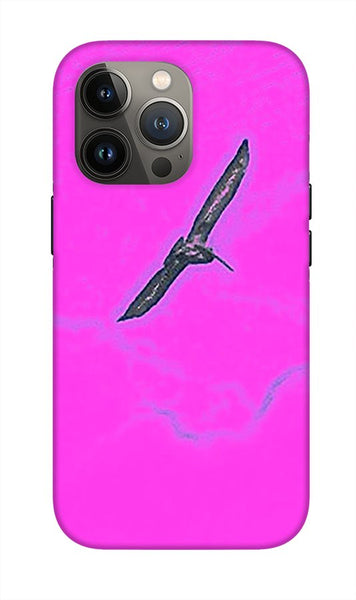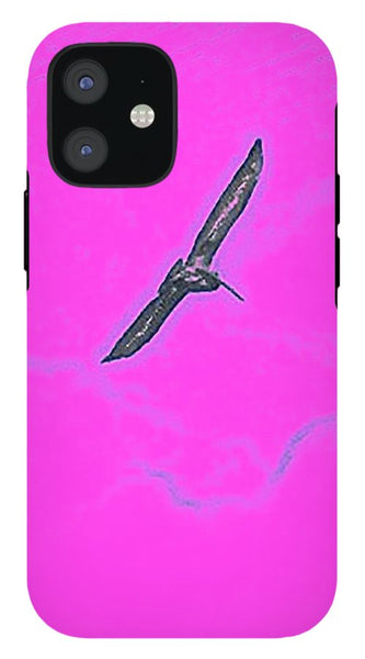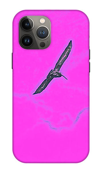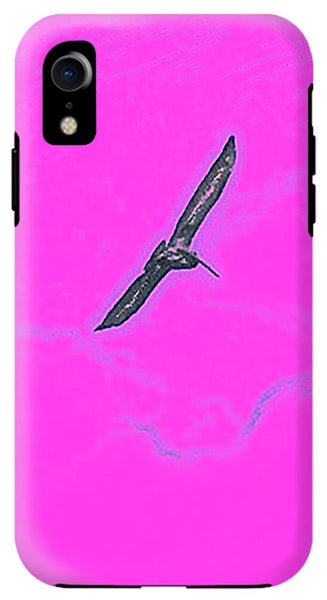 Black Birdie In Pink Sky iPhone case by Irvlands Artfolio.   Protect your iPhone with an impact-resistant, slim-profile, hard-shell case. The image is printed directly onto the case and wrapped around the edges for a beautiful presentation. Simply snap the case onto your iPhone for instant protection and direct access to all of the phone's features!