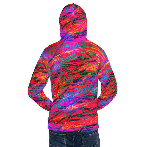This comfy unisex hoodie has a soft outside with a vibrant print and an even softer brushed fleece inside. The hoodie has a relaxed fit, and it's perfect for wrapping yourself into on a chilly evening.